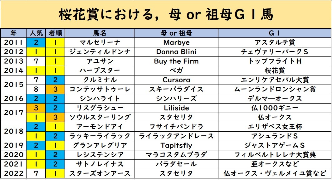 「母 or 祖母G1馬」を満たす貴重な牝馬である。