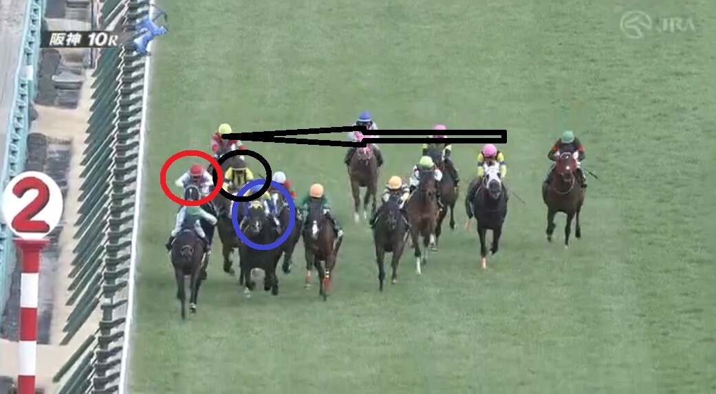 ここで④リューベックの真後ろを③ノースザワールドに譲っていたら②ゼッフィーロは伸びない馬の真後ろに入り詰まって終わっていたことでしょう。