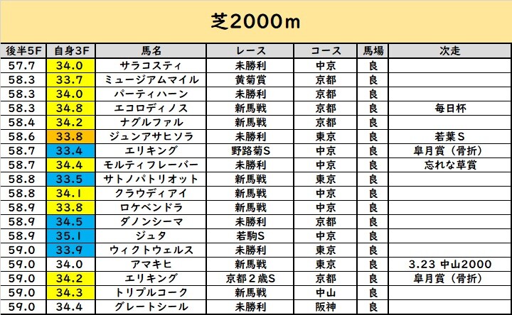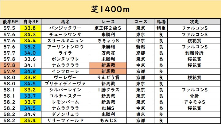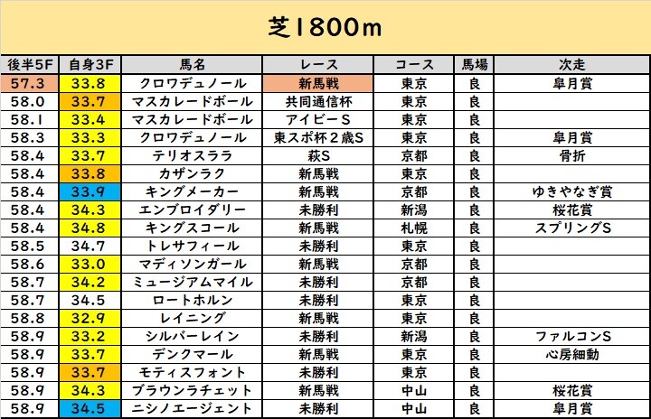 ( ゚Д゚)ピンクで塗ってるのは「新馬戦で57秒台」