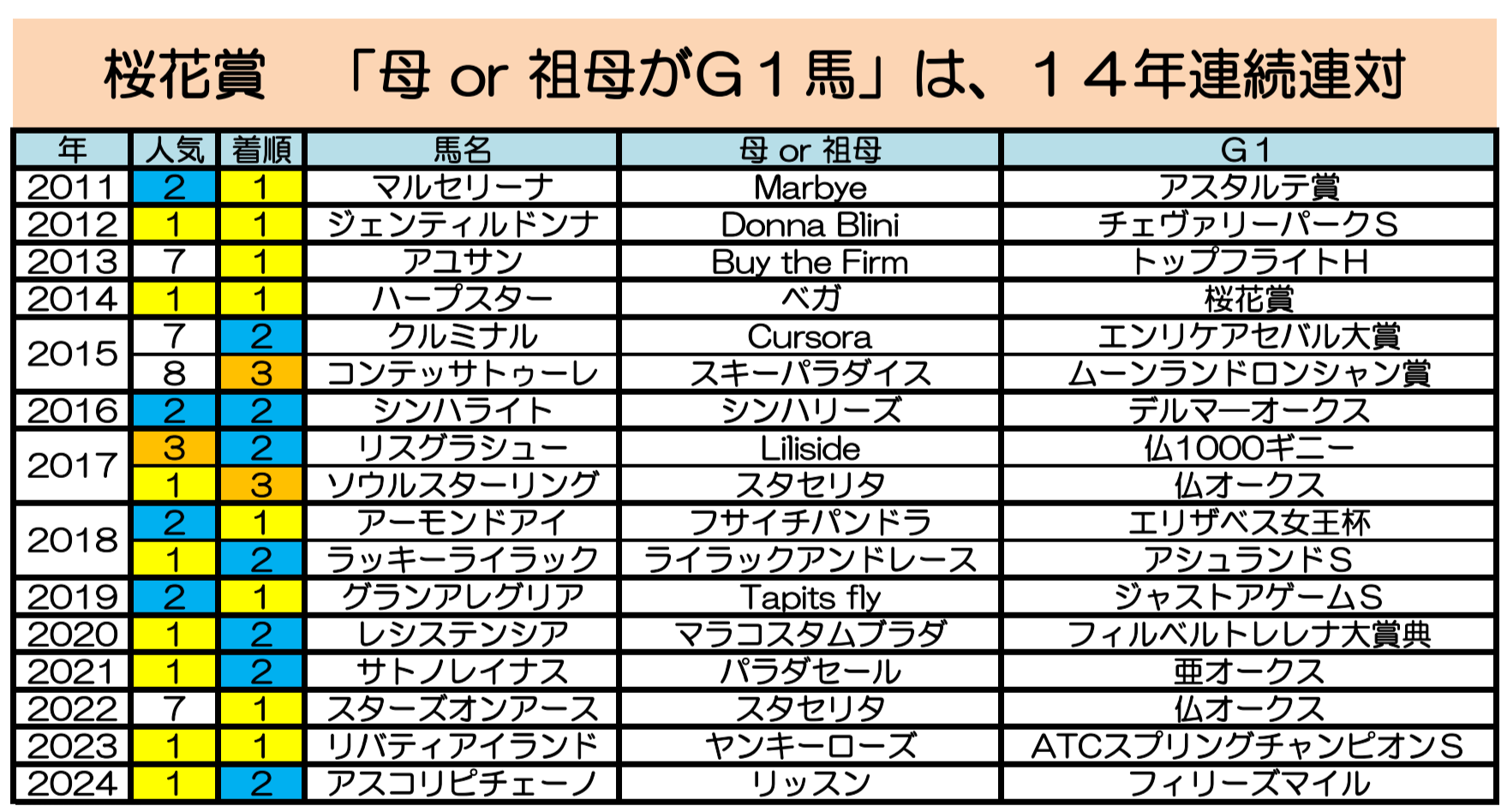 全国30人の「母 or 祖母がG1馬」ファンの皆様