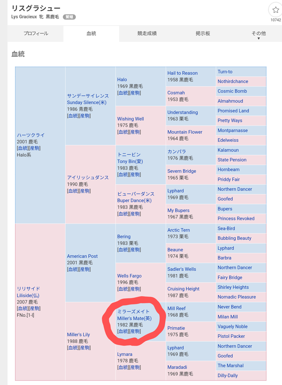 一方で、マピュースは、母父ボリクリがナスルーラ系の血を持っていて