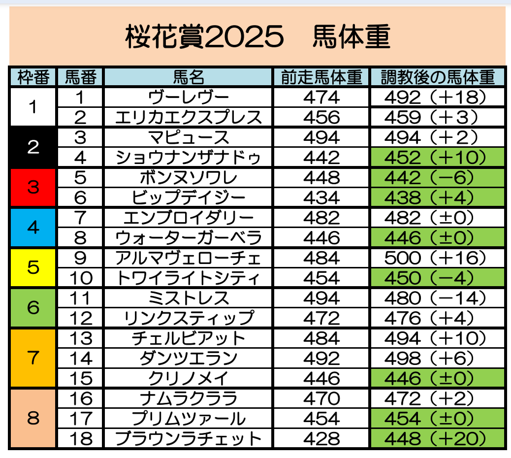 緑で塗った8頭は当日450k未満になりそうですね(´・ω・`)