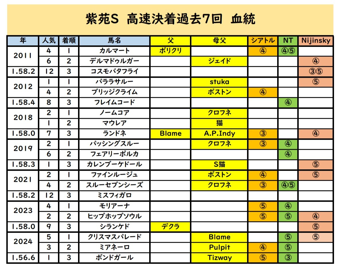 こうした超のつく高速馬場のときは、Seattle Slew持ちの上位独占も夢じゃない!!