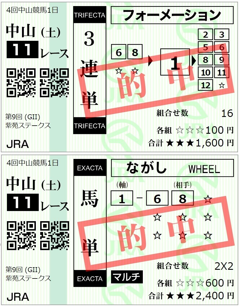 3着に12番人気が突っ込んできて複勝跳ねて馬連も的中(/・ω・)/💕