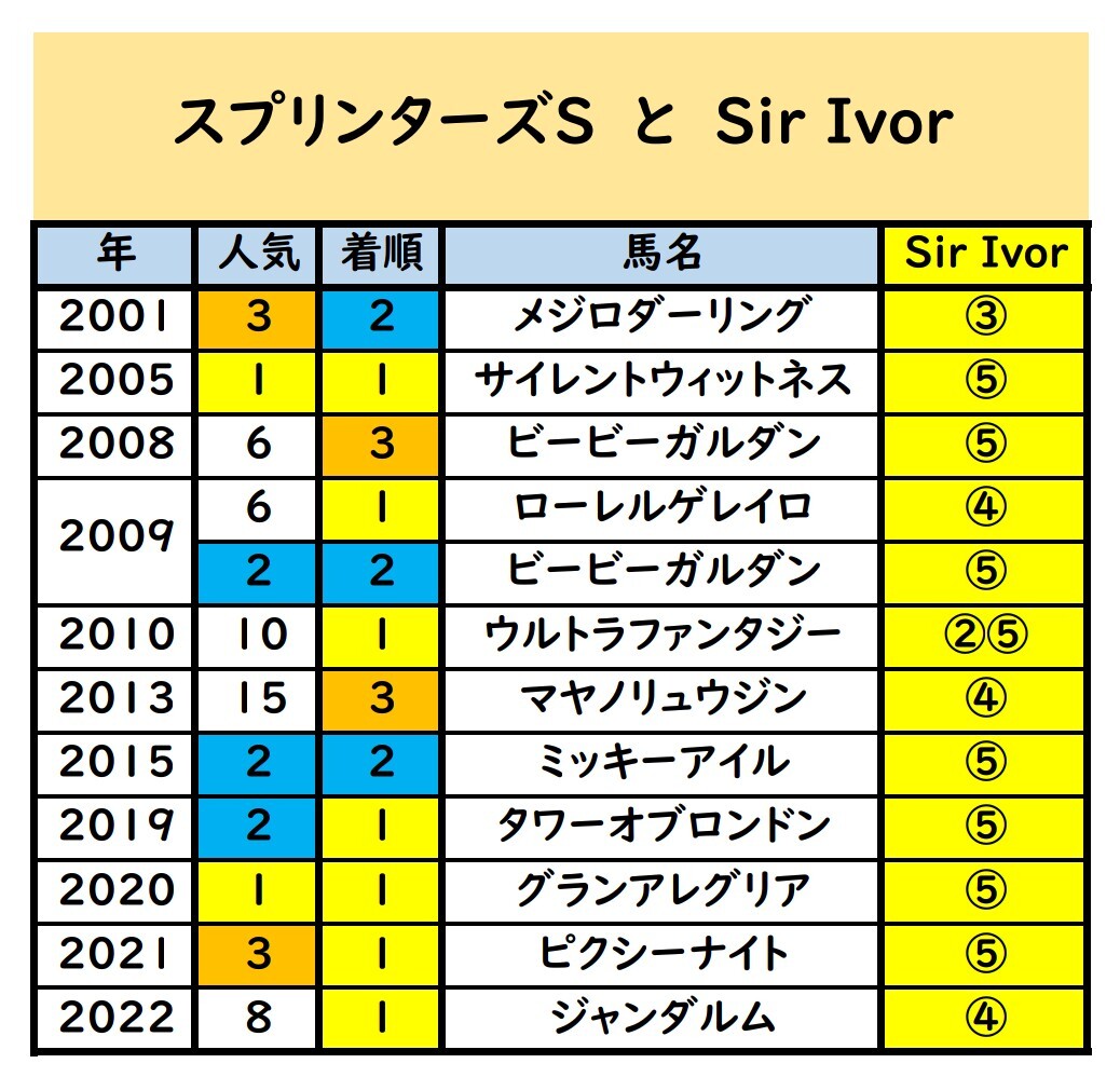 スプリンターズS最強血統である「Sir Ivor」持ちもよく来ていますね!