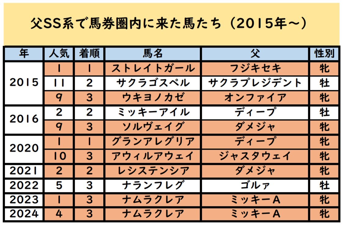 特に「父SS系」は牡馬と牝馬に差があるように思えます。