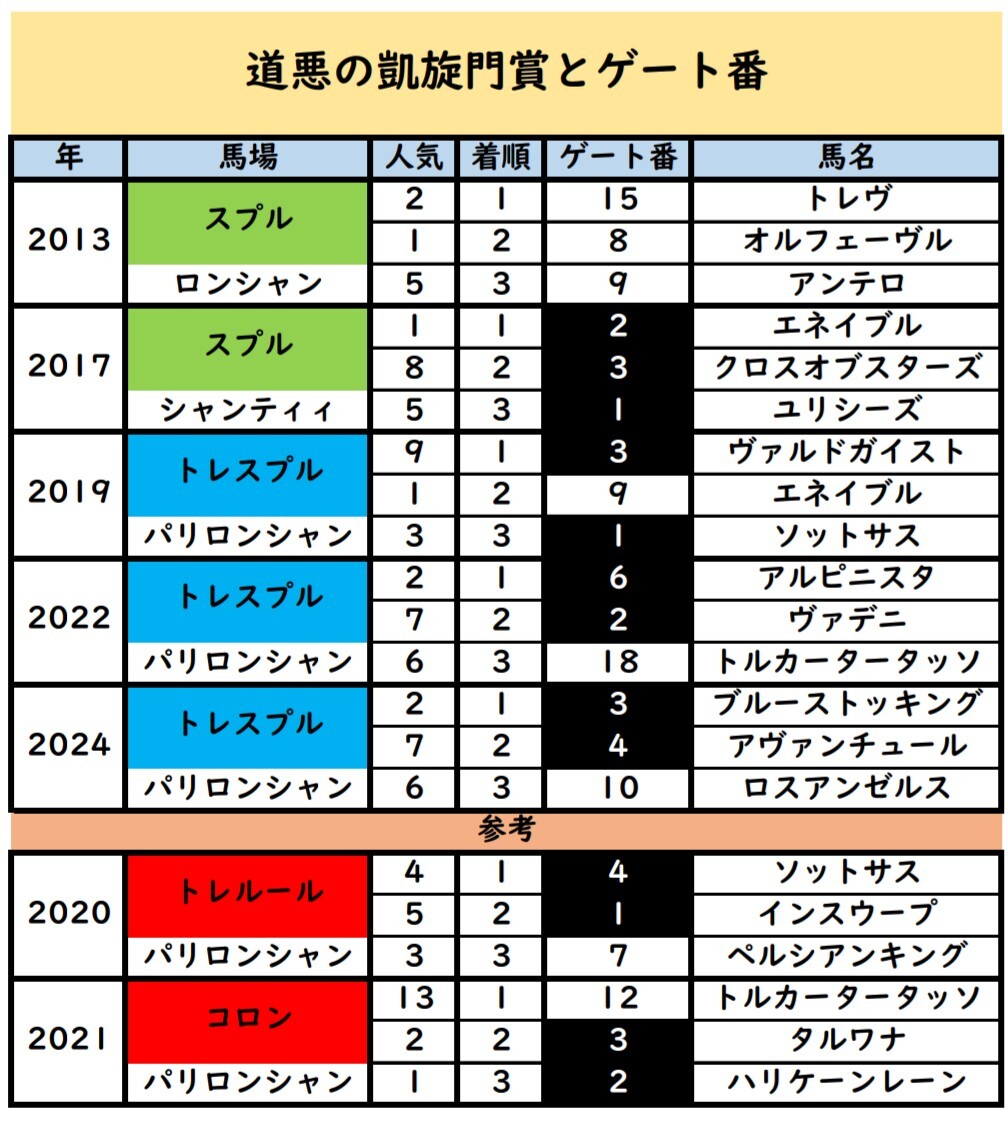 毎年2頭ずつ「ゲート番1~6」が馬券に絡んでいます!
