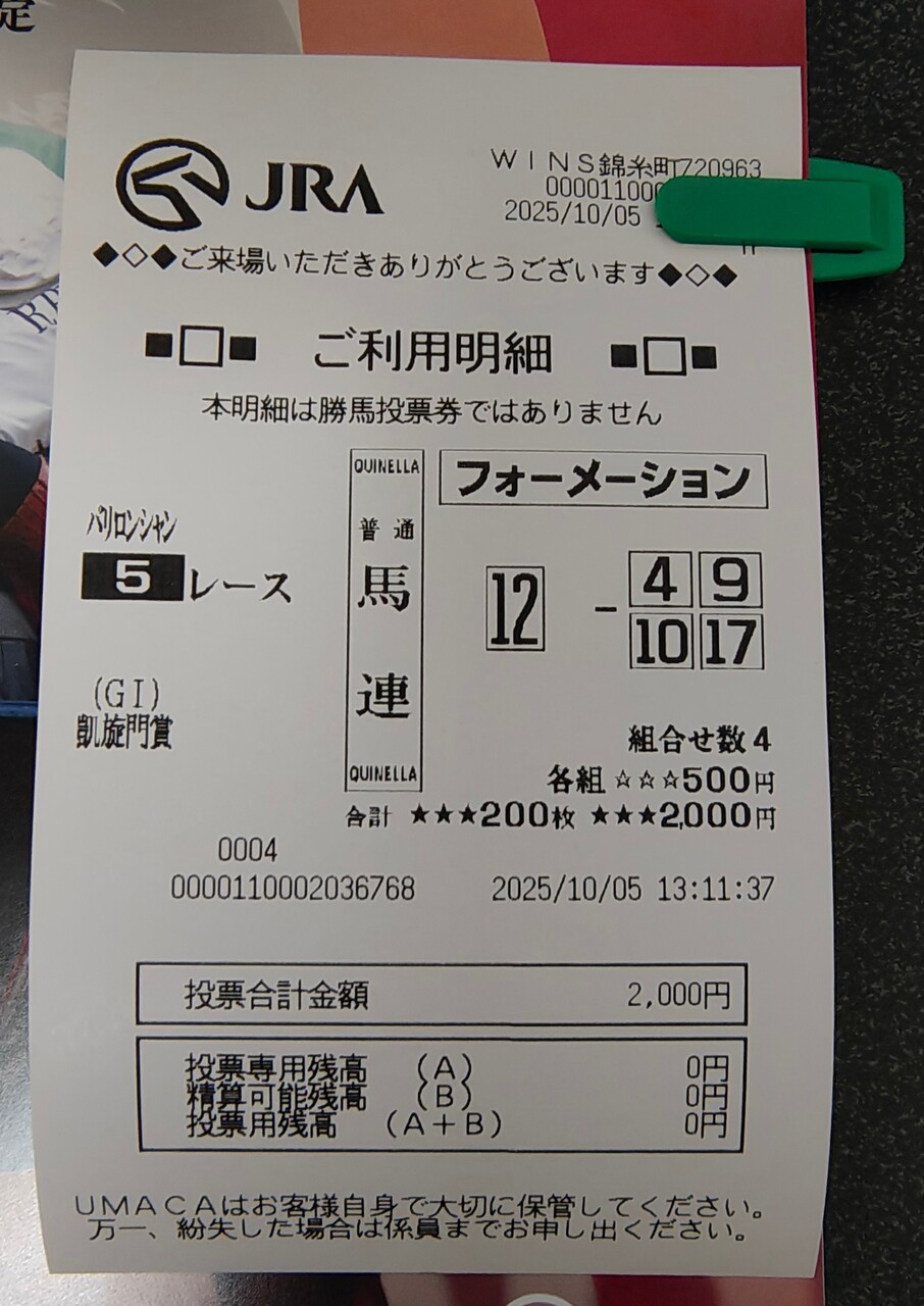 ゲート番の内やら、血統で気になる馬は全部買ってます!